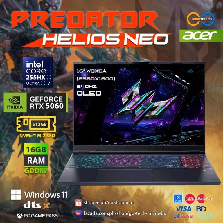 Acer Predator Helios Neo PHN165-71-72WE Black | 16″ WQXGA 240Hz Oled | Intel Core Ultra 7 255HX | RTX 5060 | 16Gb Ram | 512Gb Storage Gaming Laptop