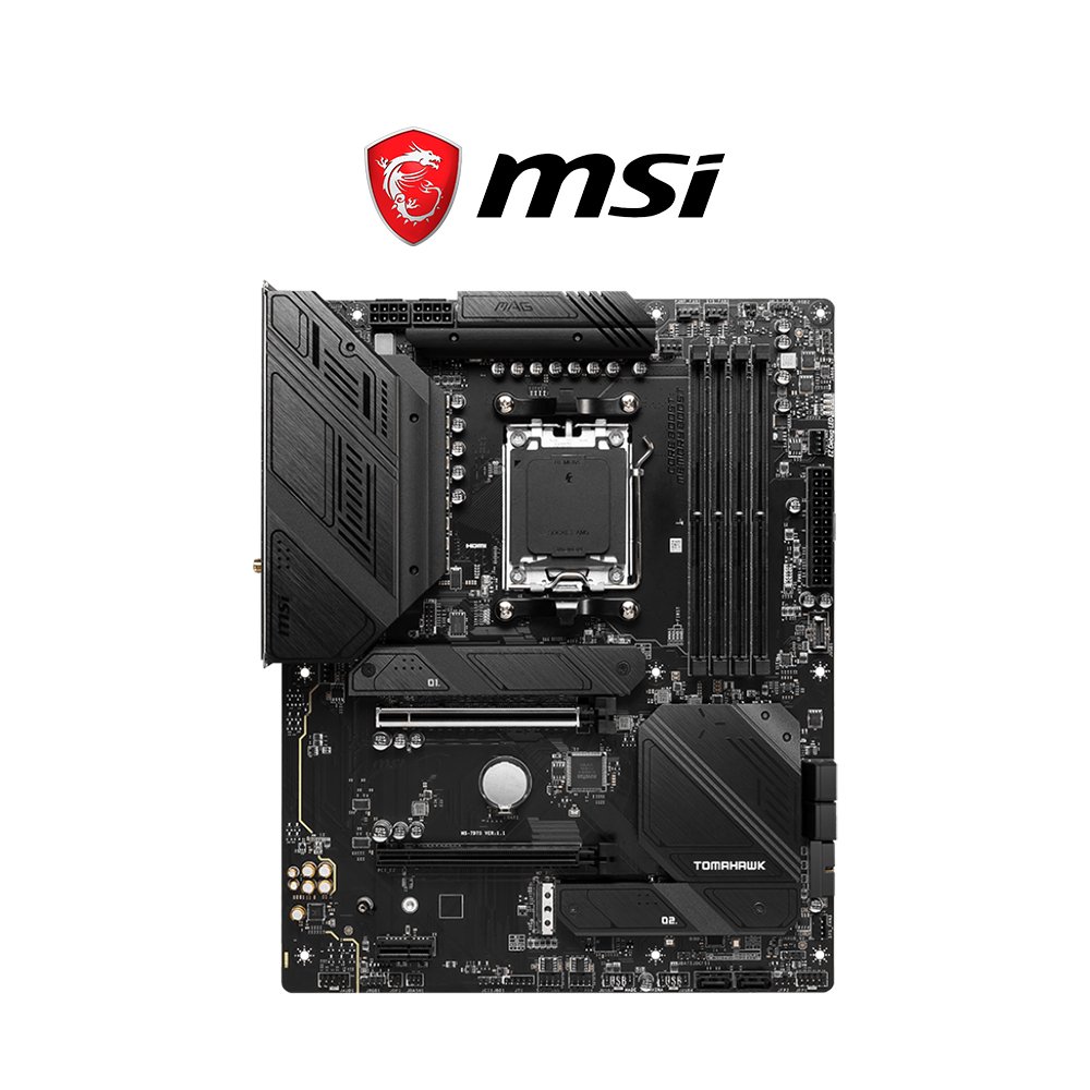 The MSI MAG B650 TOMAHAWK WIFI is an ATX motherboard for AMD’s AM5 platform that balances performance, features, and price, making it a solid choice for gaming and productivity builds. It supports AMD Ryzen 7000, 8000, and 9000 Series processors and the latest DDR5 memory.