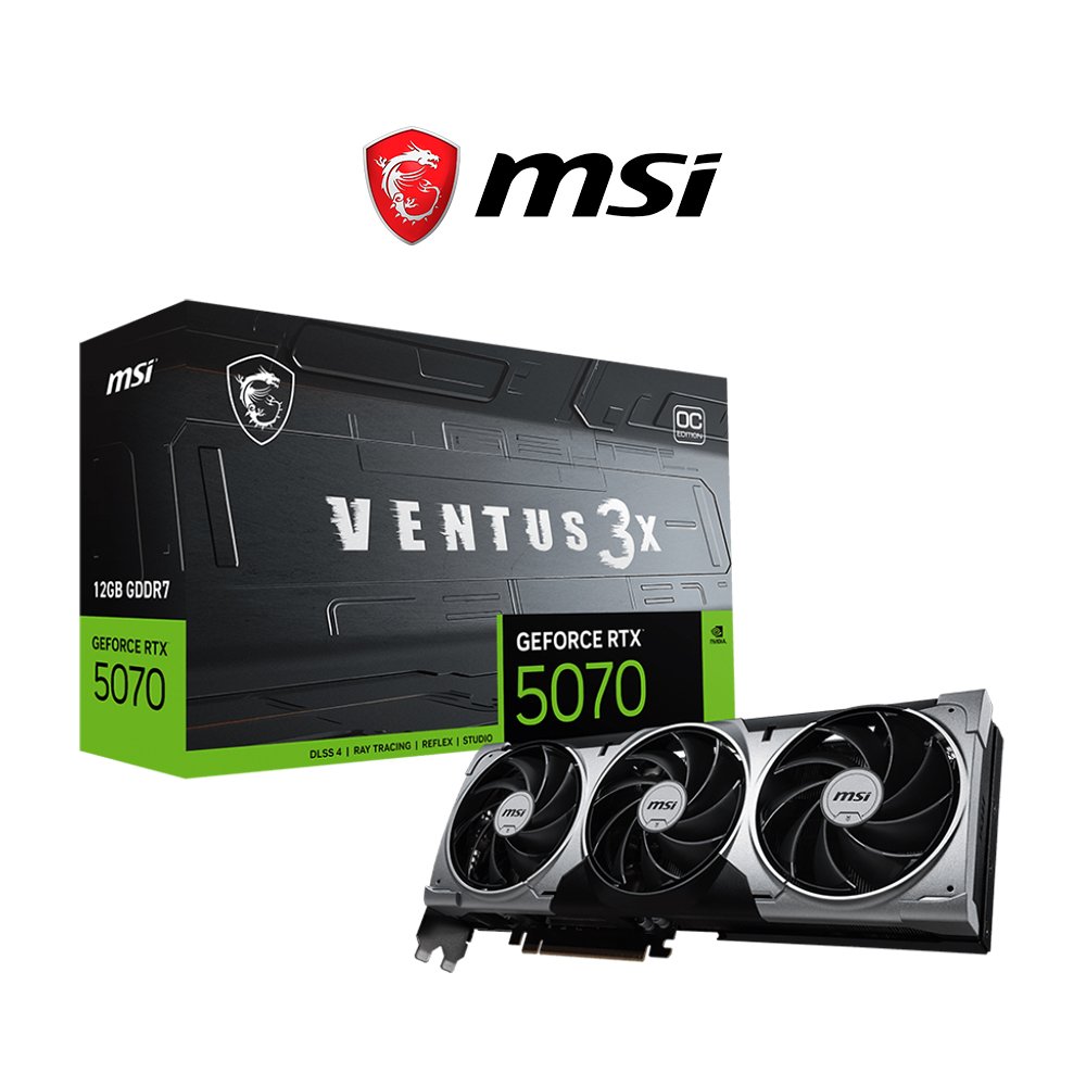 The MSI GeForce RTXâ„¢ 5070 12G VENTUS 3X OC is a high-performance graphics card built on the NVIDIA Blackwell architecture, featuring 12GB of GDDR7 memory and a triple-fan cooling system. It was released in March 2025 and is designed for high-resolution gaming and creative applications.