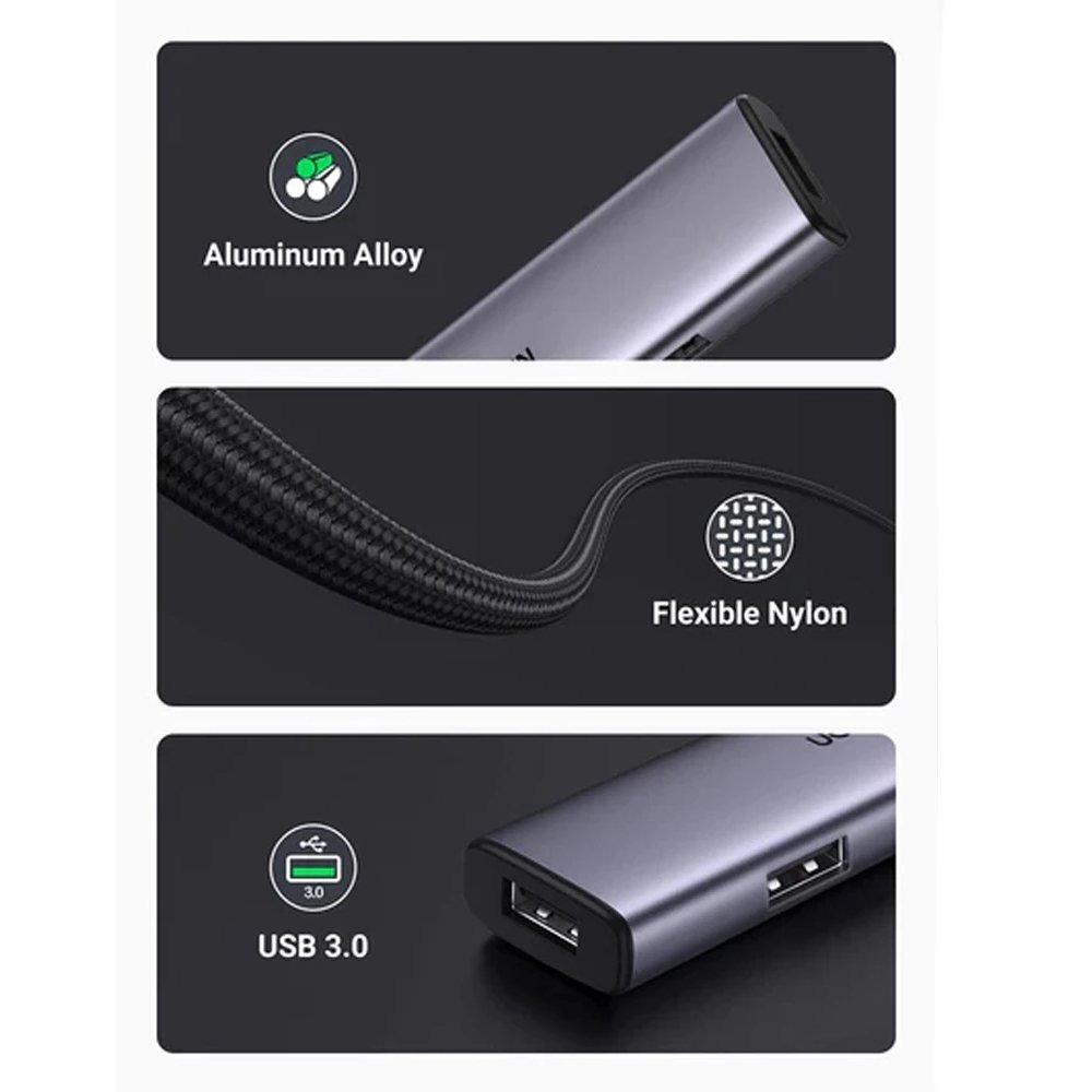 The Ugreen CM473 is a 4-port USB-C hub that expands the connectivity of devices with a USB-C port, such as laptops, tablets, and phones. It is available in different versions, with the most common variants offering either four USB-A 3.0 ports or a mix of USB-A and USB-C ports.